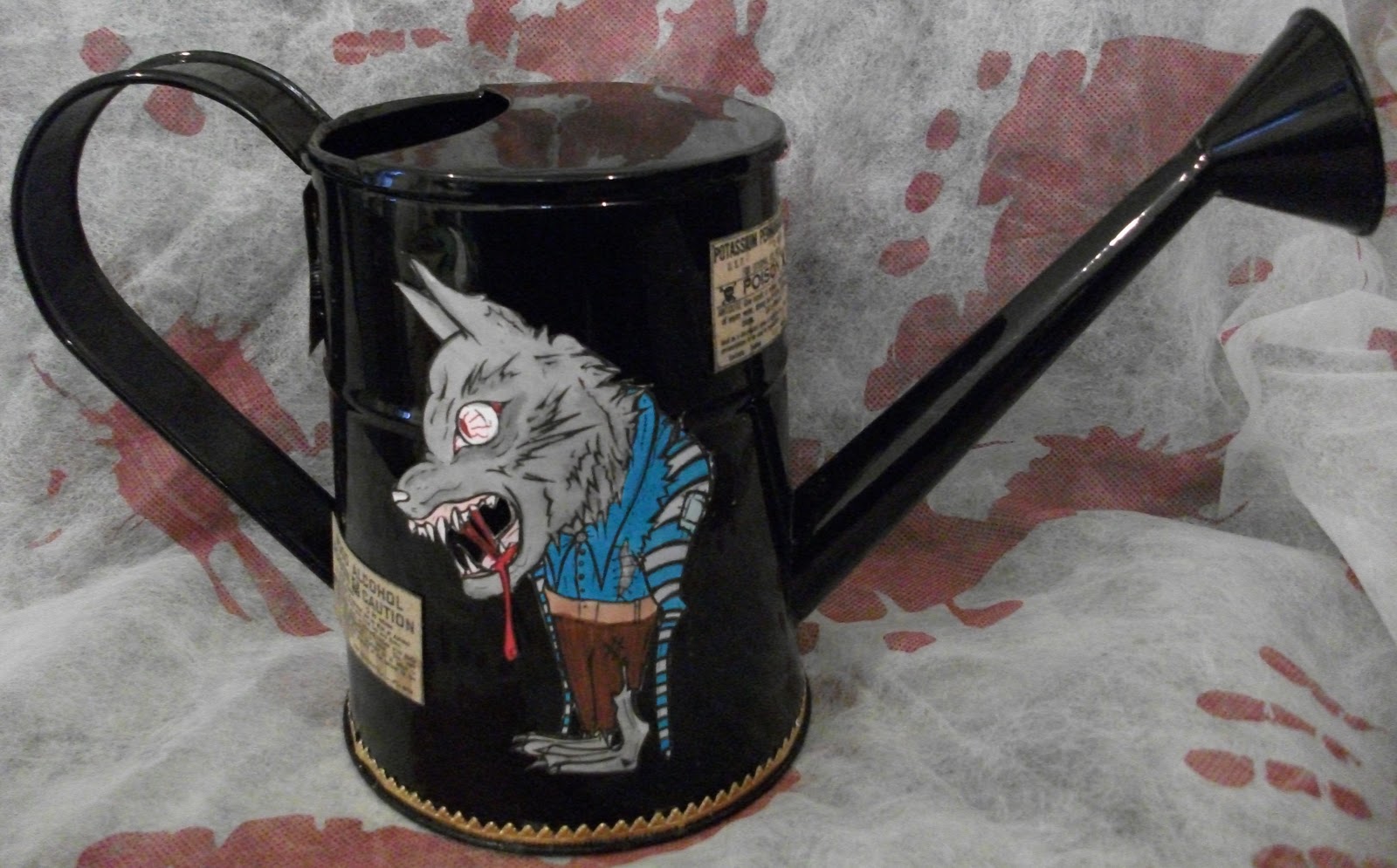 Welcome to day 29 of the 31 Days of Halloween at Smeared and Smudged. Today I have altered a Metal Watering Can for you to see. The images are from Smeared Ink and The Octopode Factory they are coloured with promarkers. I have added a piece of german scrap to the bottom of the can.